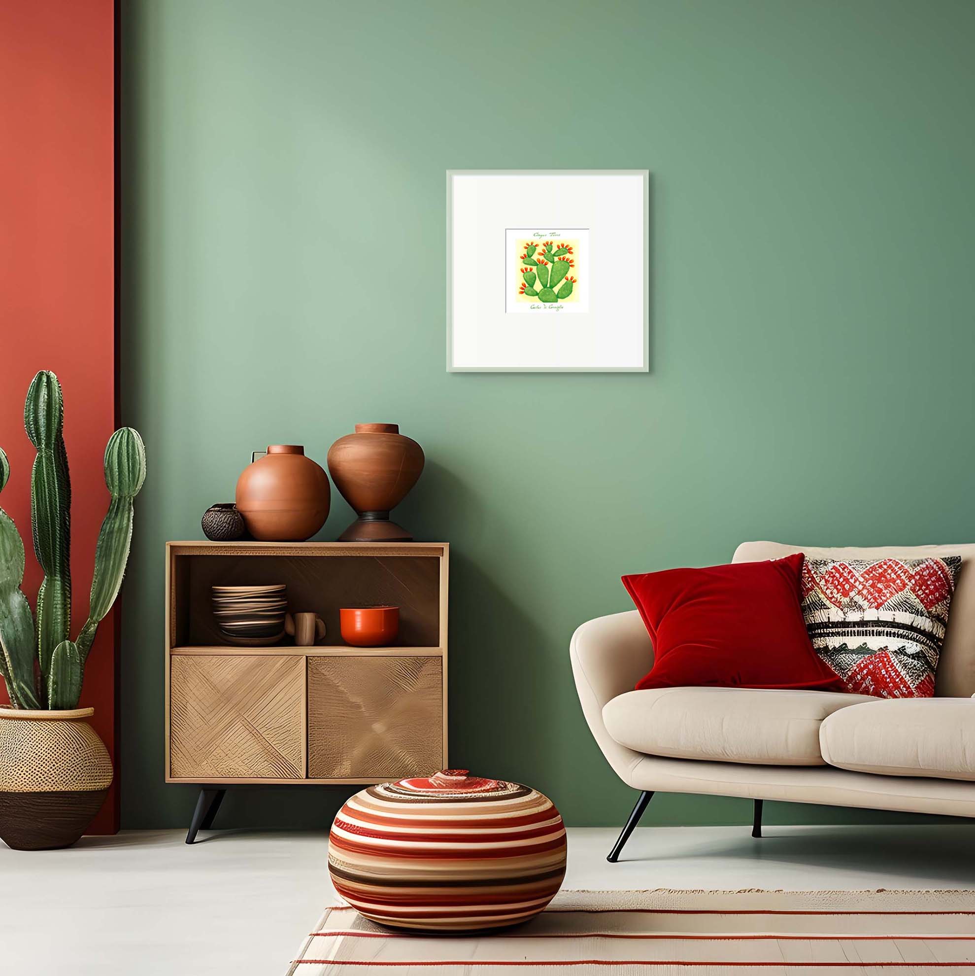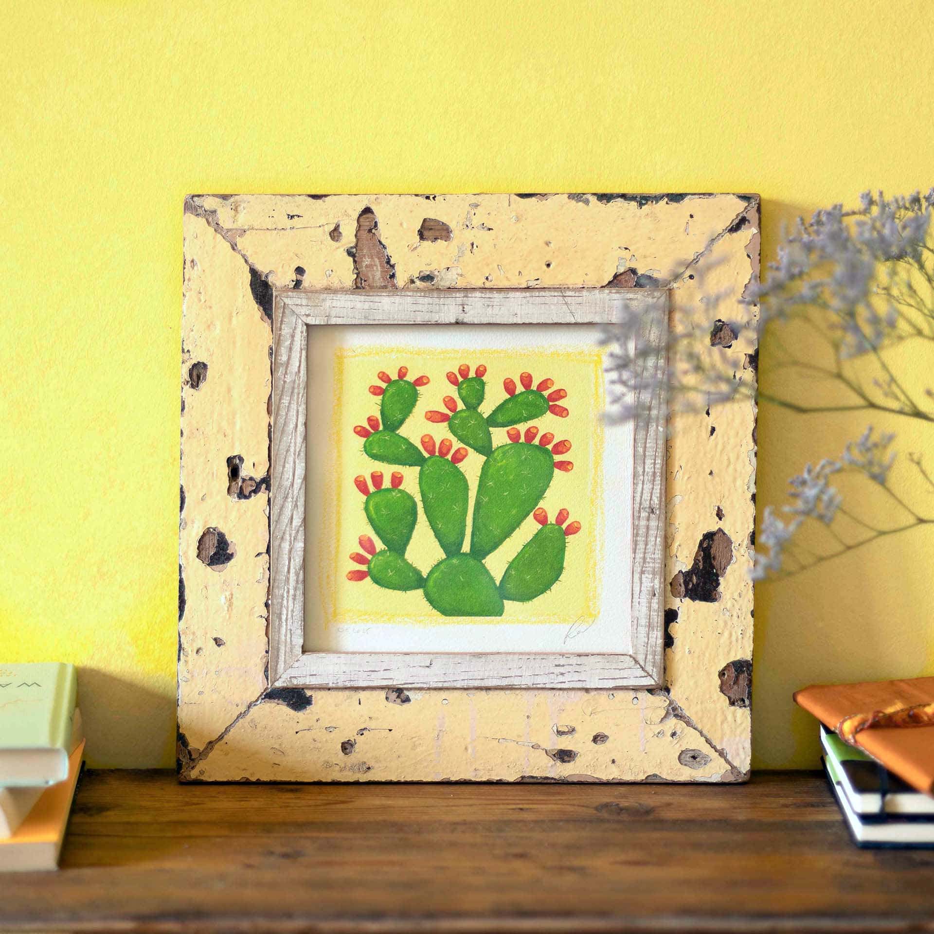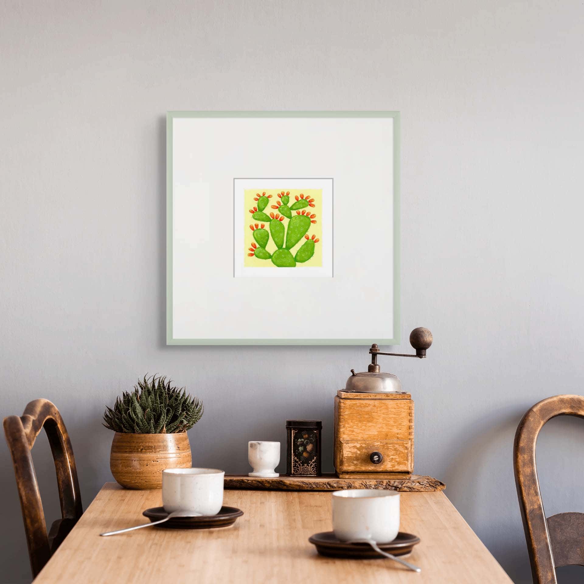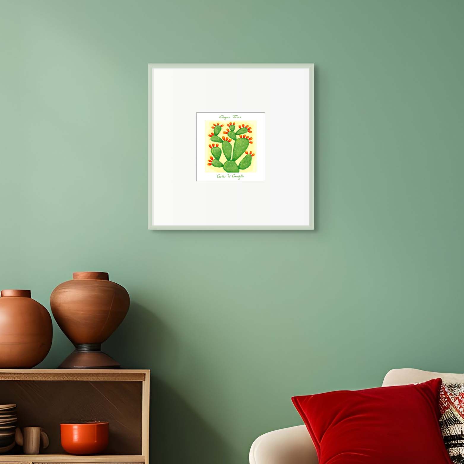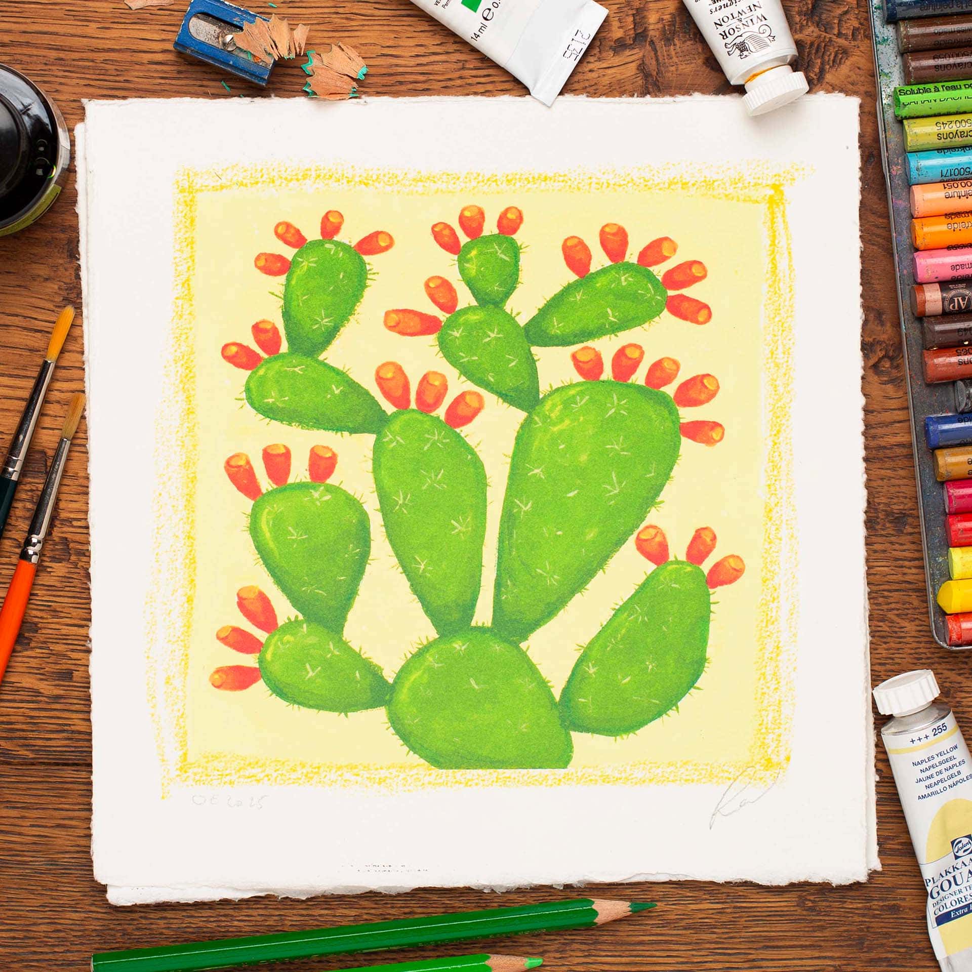 This is a Cactus digital fine art print, produced using a 12-color Giclée printing process from an original made in gouache, inks, pencils and crayons