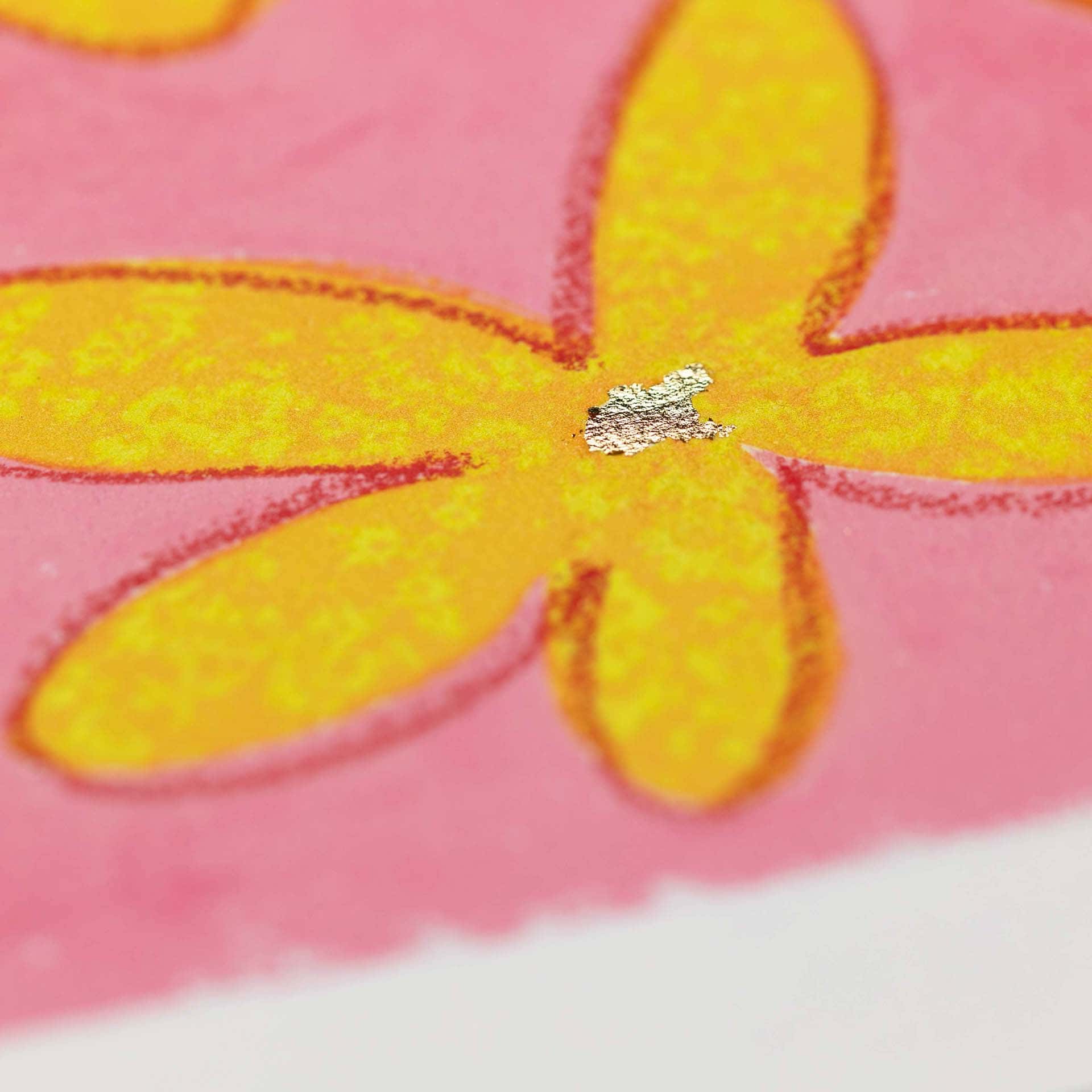 - Each print has been hand-finished with gold leaf imitation application + crayon interventions, making each print one-of-a-kind
