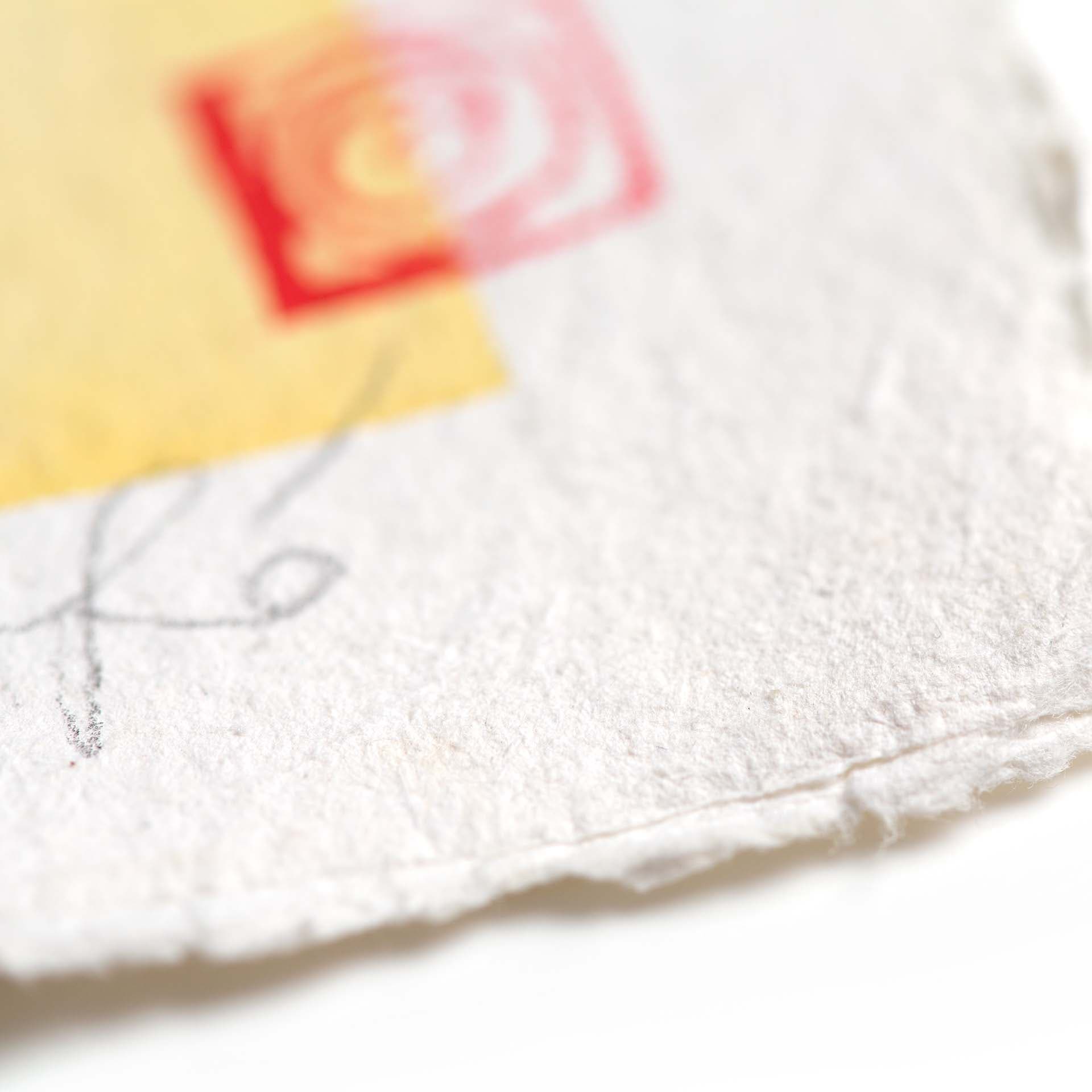 Paper: Hand-made, acid-free, made from 100% cotton rag from T-shirt cuttings, 320g