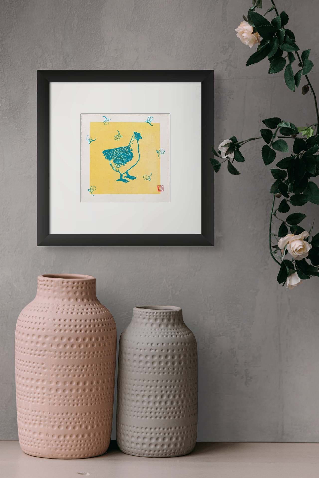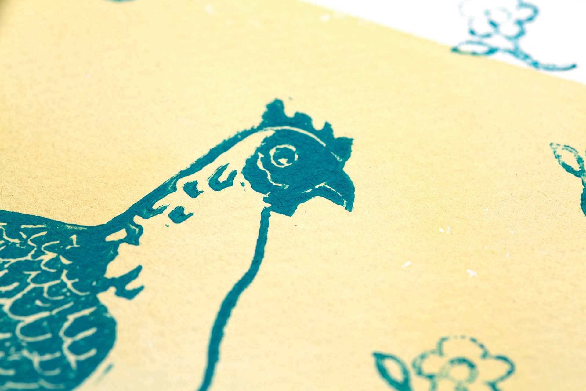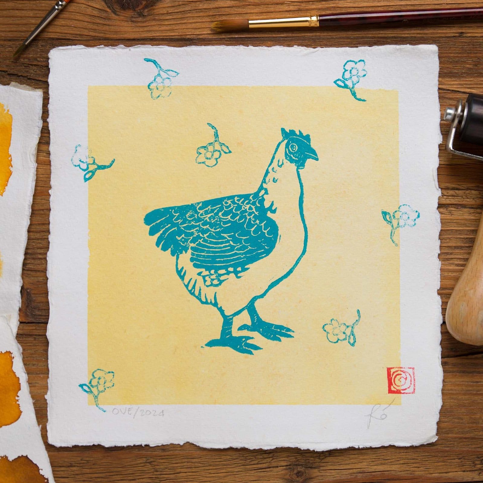 - This is an original, hand carved and hand pulled linoprint on an ink background.