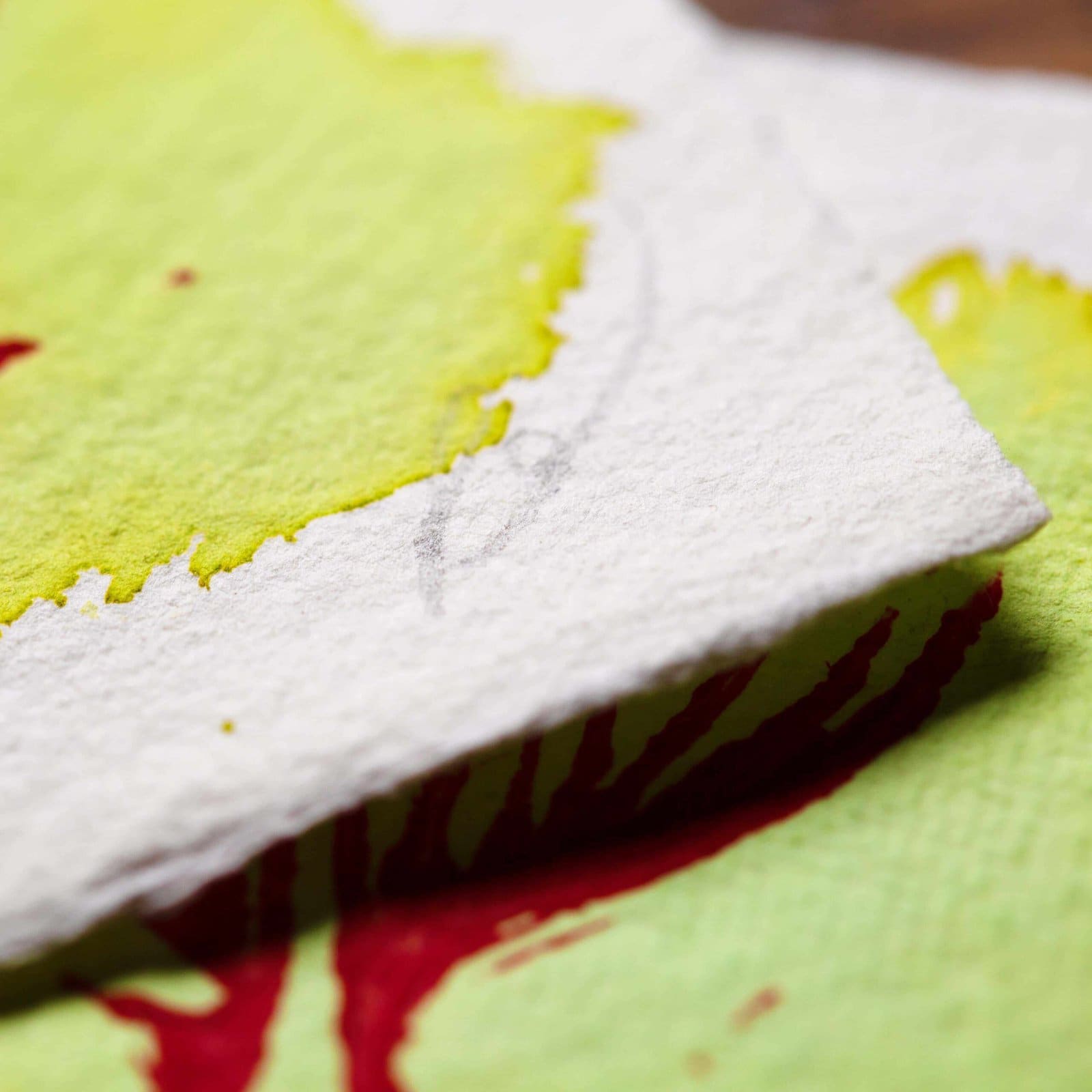 Paper: Hand-made, acid-free, made from 100% cotton rag from T-shirt cuttings, 320g